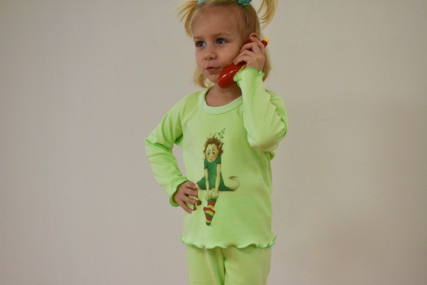 Humbla Gumbla sin nattdrakt i fargen lys grønn. Myk og deilig. Fås i str. 2 – 4- 6 – 8 år. Husk å føre på bestillingen hvilken str. du ønsker. Drakten kan også brukes som kosedrakt. Motiv på forsiden er Humbla Gumbla som tar på seg sine strømper. En kosedrakt som barna elsker.